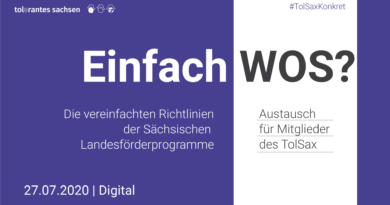 Aus diesem Grund haben sich am 9. September 2020 14 Personen aus verschiedenen Vereinen und Initiativen der sächsischen Zivilgesellschaft bei der digitalen TolSax-Konkret-Veranstaltung mit dem Titel „Am Ende des Regensbogens steht ein Topf aus Gold“ des Netzwerks Tolerantes Sachsen mit dem Thema Fundraising und Unternehmenskooperation auseinandergesetzt. Nach einem Input von Matthias Daberstiel von der Spendenagentur aus Dresden wurden einzelne Fragen besprochen und Best-Practice-Beispiele augetauscht.