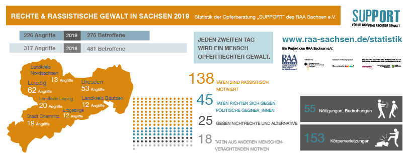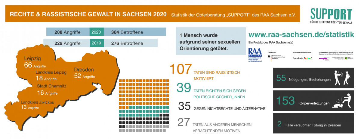 Das Methodenheft von RAA Sachsen zur Webdokumentation „Gegen uns. Betroffene im Gespräch über rechte Gewalt nach 1990 und die Verteidigung der solidarischen Gesellschaft“ richtet sich an politische Bildner*innen und Lehrpersonen und stellt eine Möglichkeit dar, junge Menschen in ihrer Auseinandersetzung mit der Webdokumentation partizipativ und reflexiv zu begleiten. Zum Einstieg wird ein Projekttag vorgeschlagen. Zusätzlich stehen zur Vertiefung mehrere Optionen zur Verfügung, die modular zusammengesetzt werden können. Beide Formate sind für 5 bis 30 Teilnehmende ab der Jahrgangsstufe 8 im außerschulischen oder schulischen Kontext geeignet. Gegenstand dieser beiden Formate sind nicht nur die einzelnen Motive von rechter, rassistischer und antisemitischer Gewalt. Das Ziel ist vielmehr, in einem partizipativen, bewertungsfreien Lernprozess das übergeordnete Prinzip und die Wirkmacht von rechter Gewalt bewusst zu machen: Es sind Individuen, die angegriffen werden und direkt oder indirekt von rechter Gewalt betroffen sind. Dabei richtet sich rechte Gewalt aber nicht ausschließlich gegen die direkt Betroffenen, sondern gegen die gesamte pluralistische Gesellschaft.