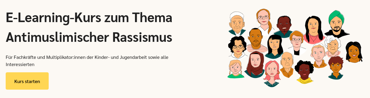 In dem neuen E-Learning-Kurs können sich Fachkräfte und Multiplikator_innen der Kinder- und Jugendarbeit sowie alle Interessierten kostenfrei, orts- und zeitunabhängig in vier Modulen den Themen Diskriminierung, Rassismus und antimuslimischer Rassismus widmen. Auf der Website sind auch eine Vielzahl an Handlungsimpulsen und Materialien für die pädagogische Praxis zu finden. Entwickelt wurde der E-Learning Kurs im Rahmen des bundesweiten Kompetenznetzwerks zur Prävention von Islam- und Muslimfeindlichkeit, von ZEOK e.V., der aej e.V. sowie ihren Kooperationspartnern – die Muslimische Jugend in Deutschland e.V. sowie die Koptisch-Orthodoxe Jugend in Deutschland e.V..