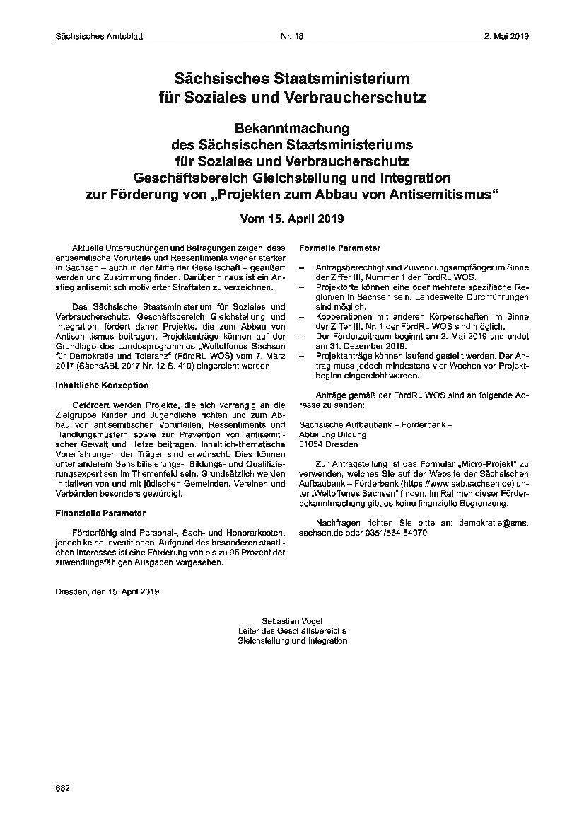 In diesem Jahr zeichnet der Preis vor allem beispielhafte und übertragbare Projekte aus, die sich aktiv und kreativ gegen Antiziganismus und Antisemitismus engagieren; nein zu Ausgrenzung und Diskriminierung sagen und das Engagement gegen gruppenbezogene Menschenfeindlichkeit (GMF) stärken sowie den gesellschaftlichen Zusammenhalt fördern und das Engagement gegen Extremismus aktiv unterstützen. Den Gewinner/-innen winken Geldpreise in Höhe von bis zu 5.000 € und eine verstärkte Präsenz in der Öffentlichkeit sowie ein Workshop-Angebot, welches die Interessen der Preisträgerprojekte aufgreift. Bewerbungsschluss: 22.September 2019.