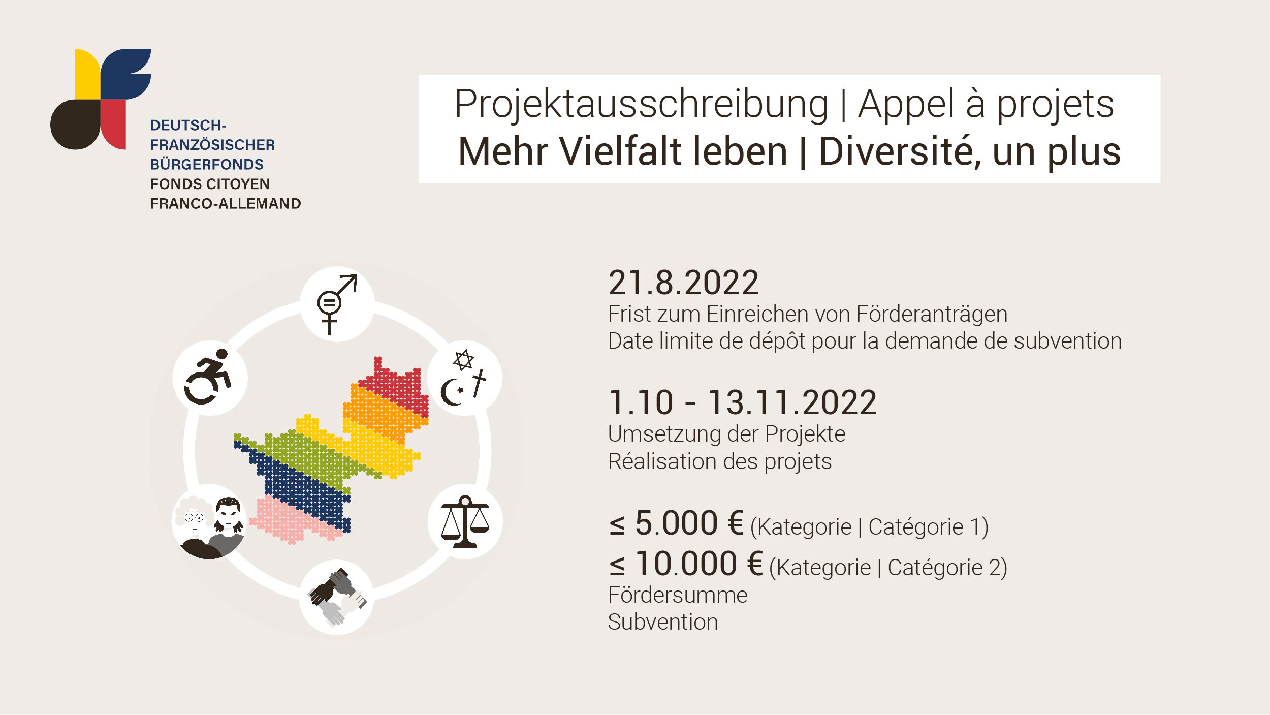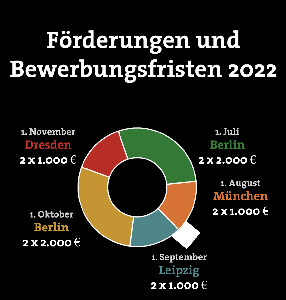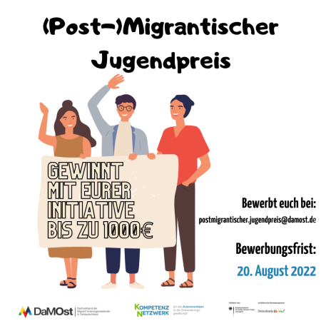 Das Deutsche Kinderhilfswerk zeichnet mit dem Deutschen Kinder- und Jugendpreis 2023 Projekte aus, bei denen Kinder und Jugendliche beispielhaft an der Gestaltung ihrer Lebenswelt mitwirken. Der Preis wird in den Kategorien „Solidarisches Miteinander“, Politisches Engagement und Kinder- und Jugendkultur vergeben. Die Gewinner:innen des 1. Platzes jeder Kategorie erhalten ein Preisgeld in Höhe von 6.000 Euro. Außerdem wird es in jeder Kategorie eine lobende Erwähnung geben, die mit 3.000 Euro dotiert ist. Zusätzlich wird ein Projekt mit dem Europa-Park JUNIOR CLUB Award ausgezeichnet, der mit einem Preisgeld von 3.000 Euro gewürdigt wird. Bewerbungsschluss: 15. Januar 2023.