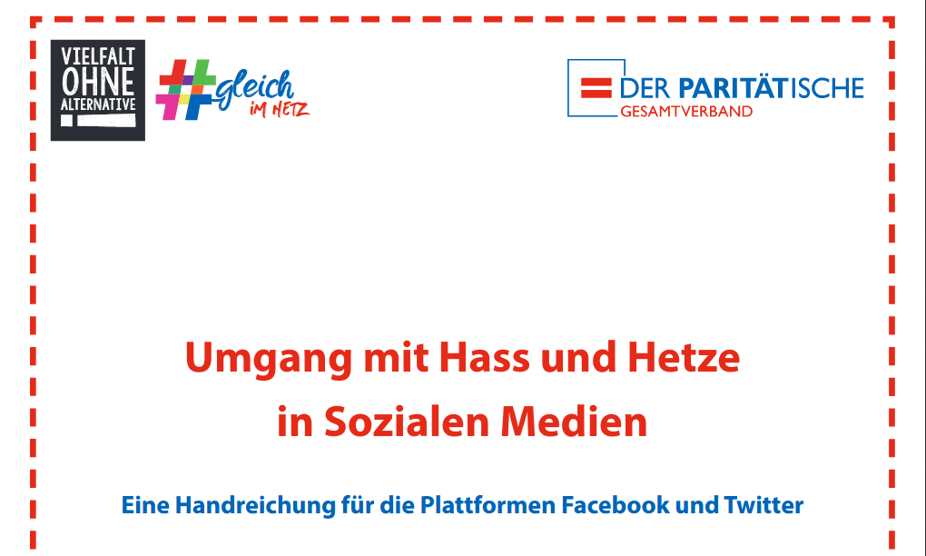 WeiterlesenDer Paritätische Gesamtverband hat eine neue Handreichung zur Einordnung von Hate Speech und zur Vorbereitung auf den Umgang mit Shit Storms herausgebracht. Die Handreichung kann beim Paritätischen bestellt werden und steht zum Download zur Verfügung.