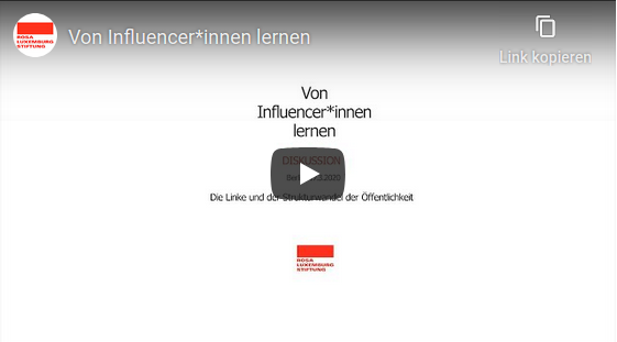 WeiterlesenWas können linke Aktivist*innen und Politiker*innen von kritischen Influencer*innen lernen? Wie generieren sie Aufmerksamkeit, bauen sich eine Community auf und wie transportieren sie politische Botschaften? Das diskutieren der Moderator Tarik Tesfu, die Medienwissenschaftlerin Larissa Eberhart und der Ko-Autor der Studie «Von Influencer*innen lernen» Marius Liedtke. Die Veranstaltung wird moderiert von Patricia Hecht (taz) und ist als youtube-Video verfügbar.