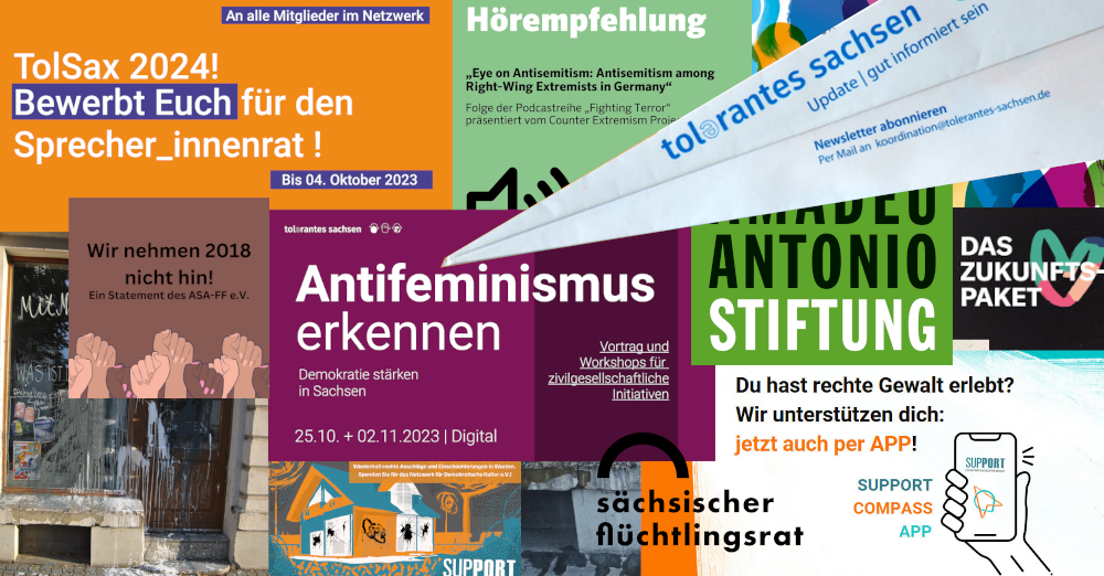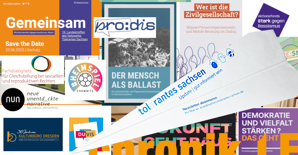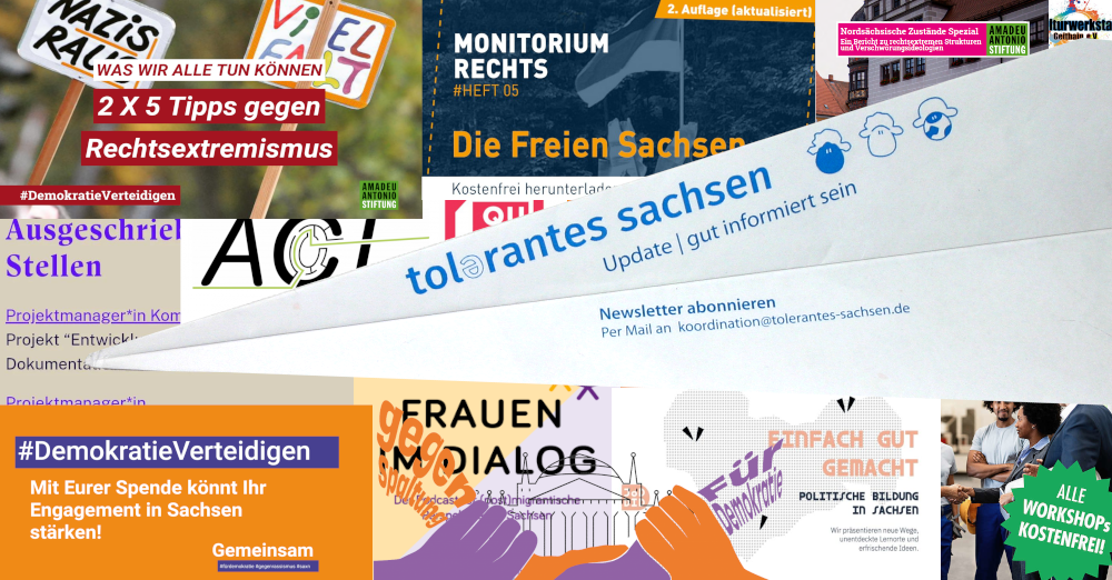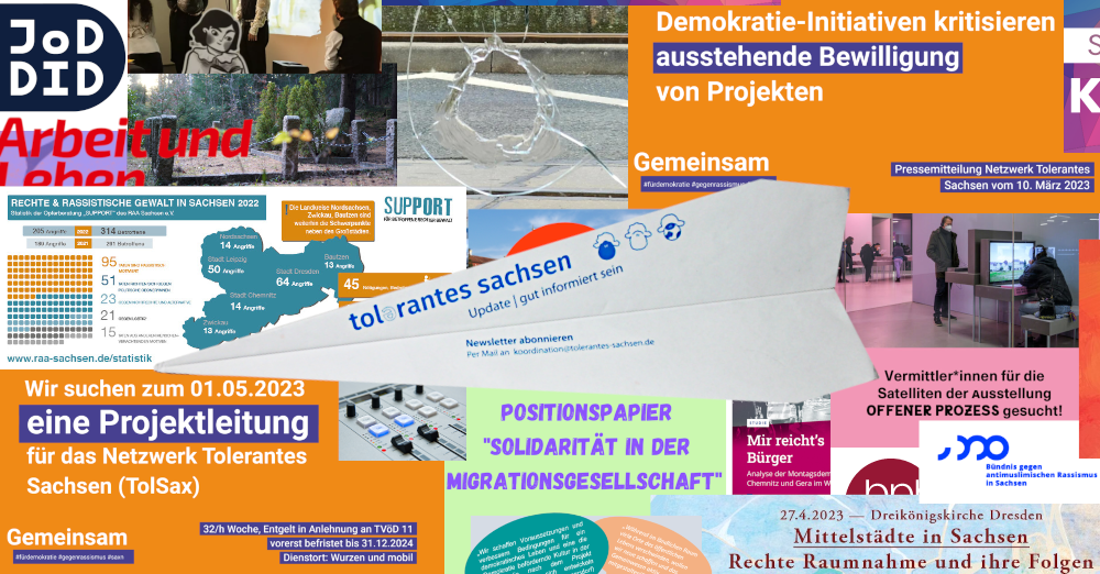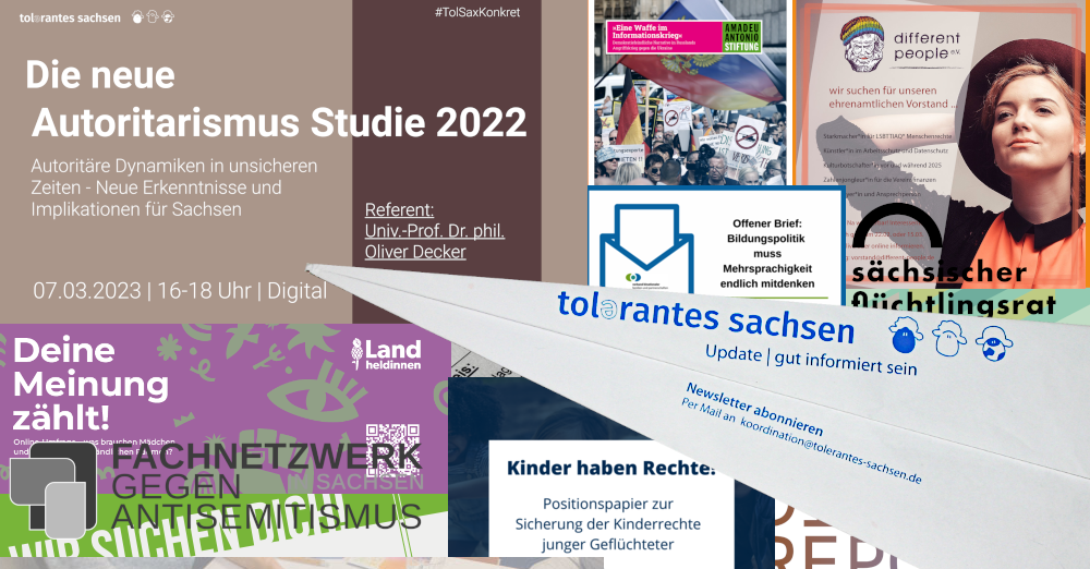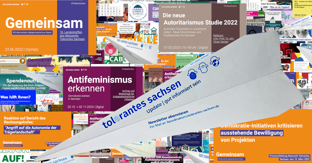 Im Editorial unseres Februar-Newsletters würdigt TolSax-Sprecherin Melanie Riedlinger vom Kulturbüro Sachsen e.V. die Menschen, die sich auf den Demonstrationen in den letzten Tagen und Wochen trotz Anfeindungen, Hass und Hetze für Demokratie, gegen Rechtsextremismus stark gemacht haben und gibt einen Überblick, wie wir Stellung beziehen und der demokratischen Zivilgesellschaft eine Stimme geben können. Viel Spaß bei der Lektüre!