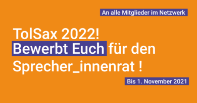Und wir möchten uns von unseren ausscheidenden Sprecher_innen verabschieden: Steven Hummel von der Engagierten Wissenschaft sowie Sophie Spitzner und Stephan Conrad vom Treibhaus e.V. Döbeln – mit sicherem Wissen darum, dass sie uns auch weiterhin aktiv verbunden bleiben! Herzlichen Dank für Euer Engagement!