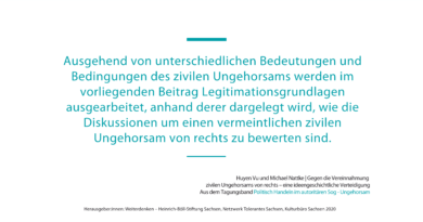 2019 fand eine Tagung zum Thema „Politisches Handeln im autoritären Sog“ statt. Eine Anschlusstagung sollte sich mit dem Thema „Ziviler Ungehorsam“ beschäftigen. Wenn du als politische Aktivistin diese Themen hörst, was sind deine ersten Assoziationen?