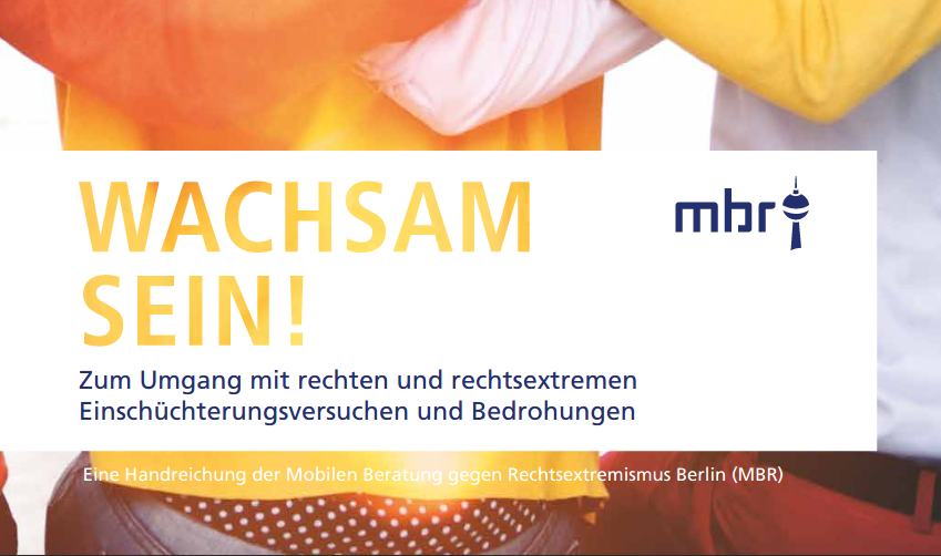 WeiterlesenPöbeleien, Drohmails, Schmierereien, angezündete Autos – die Methoden von Rechtsextremen, Menschen zu bedrohen und anzugreifen, sind vielfältig und nicht neu. Die vorliegende Handreichung der Mobilen Beratung gegen Rechtsextremismus Berlin gibt konkrete Tipps zum Umgang mit Beleidigungen, Hetze, Angriffen und anderen bedrohlichen Situationen – auch zur Prävention, damit sie gar nicht erst geschehen. Die Veröffentlichung wendet sich explizit an Menschen, die neu ins Visier von Rechtsextremen und Rechten geraten sind und die daher meist noch keine oder wenig Erfahrung im Umgang mit solchen Bedrohungen haben.