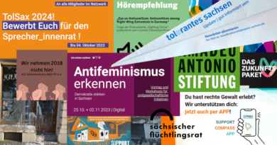 Sachsen nach den Wahlen heißt für die Zivilgesellschaft vor allem: Sich auf die eigenen Stärken besinnen, weiterhin Verbündete suchen, Netzwerke aufbauen und gemeinsame Ziele setzen. Die demokratische Zivilgesellschaft in Sachsen wird ein kritischer Begleiter der nun folgenden 8. Wahlperiode des Sächsischen Landtags sein. Viel Freude bei der Lektüre des Oktober-Newsletters wünscht