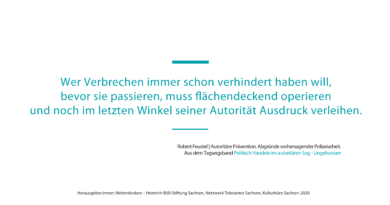 Das Netzwerk Tolerantes Sachsen und seine Mitglieder setzen sich auf vielfältige Weise für demokratische Werte und gegen Rassismus sowie andere Formen von Diskriminierung in Sachsen ein. Diese Arbeit ist rechten Akteur_innen ein Dorn im Auge und wird von diesen zunehmend als „antidemokratisch“ und „intolerant“ verunglimpft. Tatsächlich hat unsere Toleranz dort ihre Grenzen, wo gegen demokratische Prinzipien wie die unveräußerlichen Menschenrechte verstoßen wird und menschenverachtende, völkisch-nationalistische Ziele verfolgt werden.