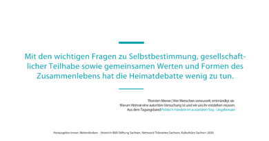 2020 | Weiterdenken – Heinrich-Böll-Stiftung Sachsen, Kulturbüro Sachsen und Netzwerk Tolerantes Sachsen | Förderhinweis | ISBN / DOI 978-3-946541-39-4 | CC-BY-NC-ND 3.0